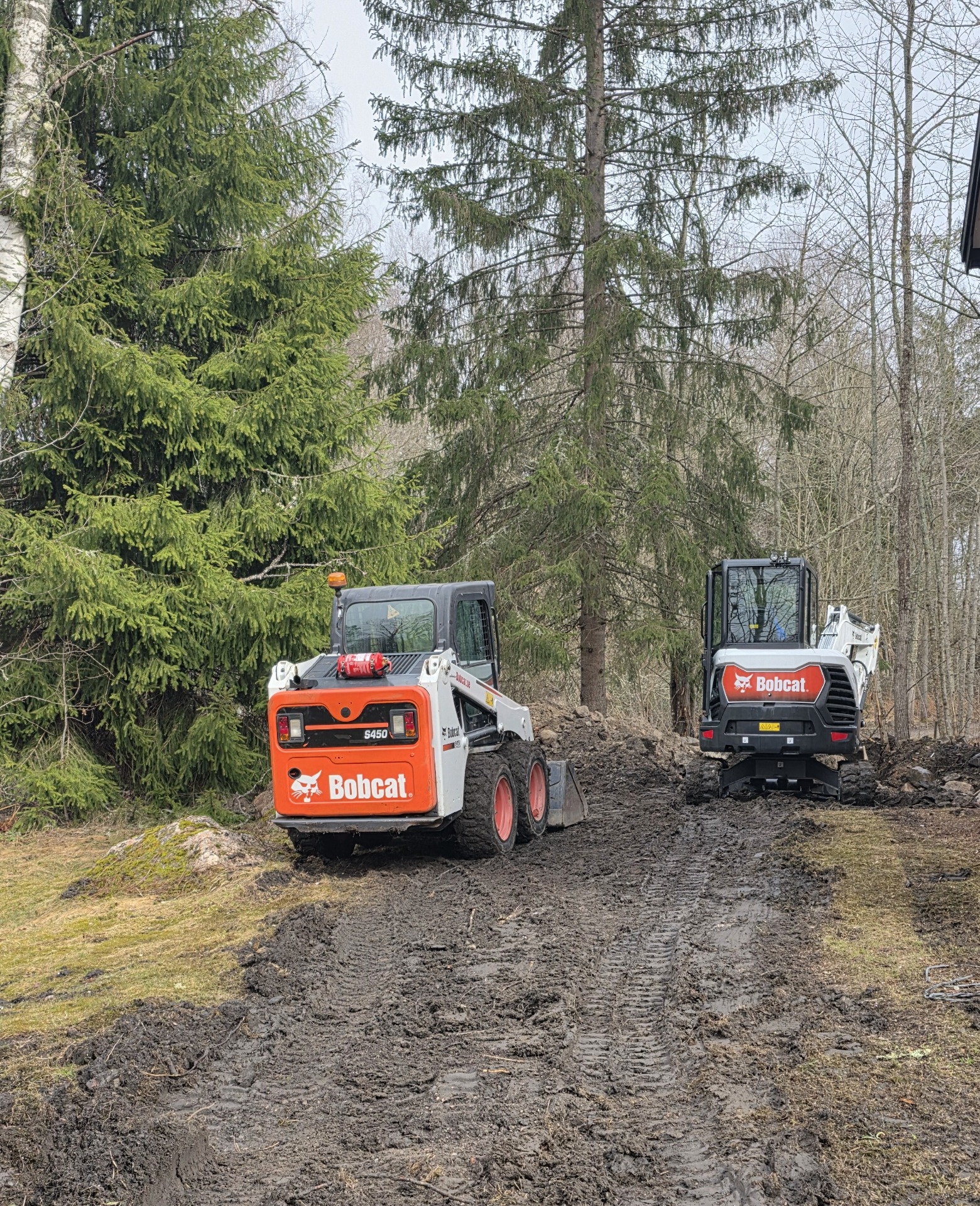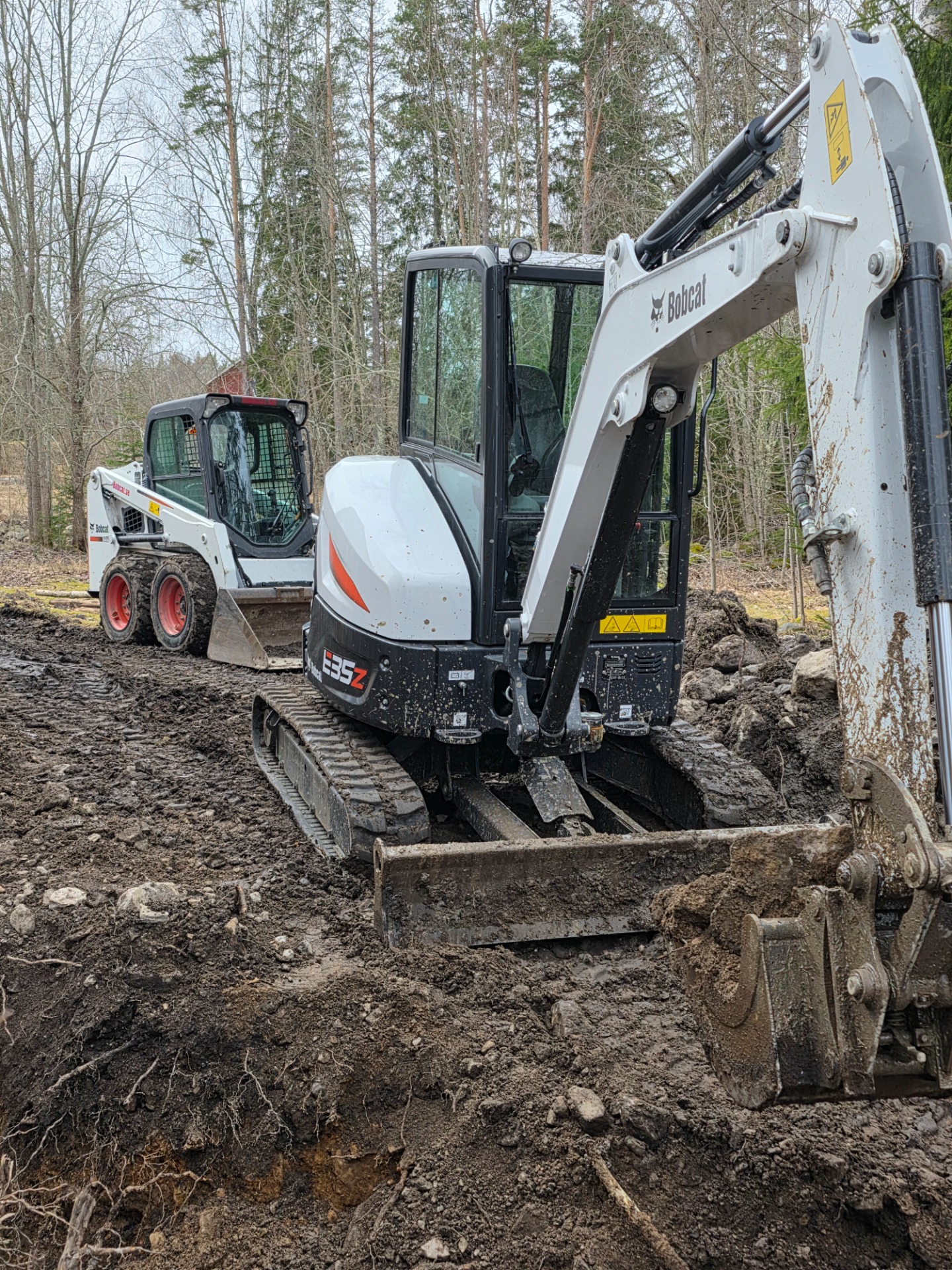 Effektivt duo-team: Grävmaskin och lastare på plats samtidigt ger snabbare och mer effektivt markarbete, med smidig borttransport av schaktmassor. Det gör att tomten hålls ren, prydlig och lättillgänglig under hela projektet.